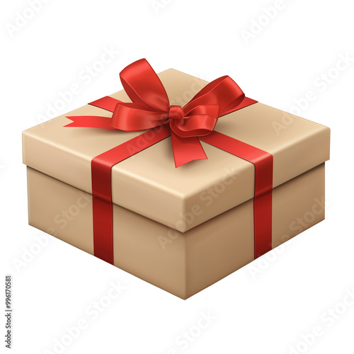 © MS, Obraz premium golden gift box with a red ribbon isolated on a transparent background