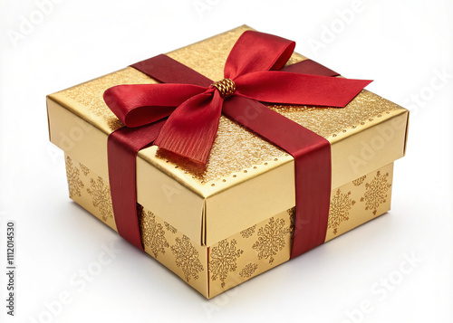 © TimosBlickfang, Fototapeta premium Golden Gift Box with Red Ribbon