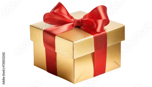 Obraz premium Golden gift box with red ribbon bow isolated on transparent background.