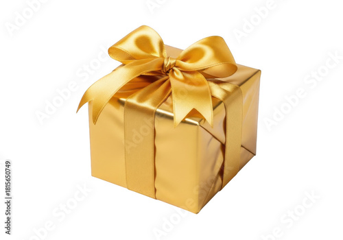 © Das Indira, Obraz premium Golden gift box with satin bow festive present ready for celebration occasion transparent background