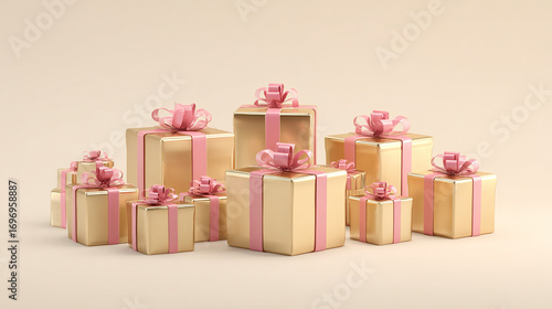 Obraz premium Golden Gift Boxes with Pink Ribbons