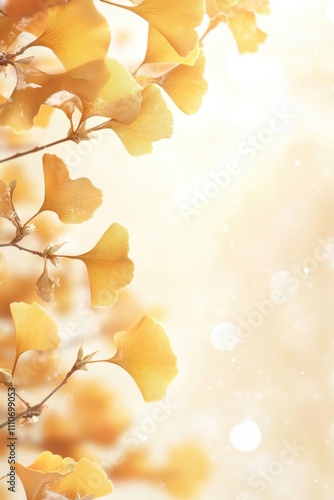 Obraz premium Golden Ginkgo biloba plant leaf in Fall closeup view.