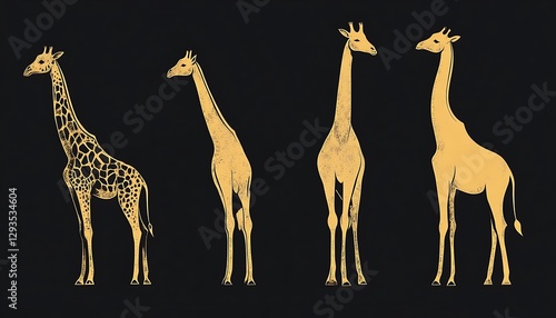 © Bandi, Naklejka premium Golden Giraffes on Black Background