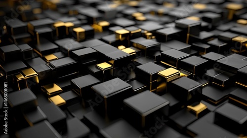 © Letterfall Std, Obraz premium Golden Glitch Abstract Black and Gold Cube Array Background.