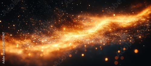 Naklejka premium Golden glitter and sparkling lights on a dark background creating a magical cosmic effect suitable for festive and creative designs