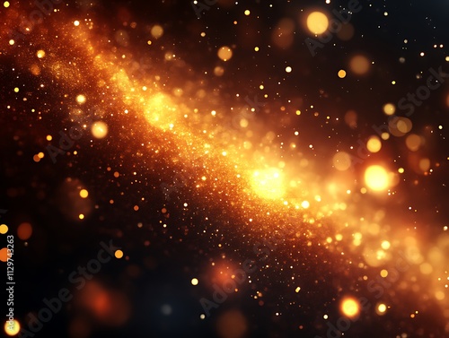 © lisa, Fototapeta premium Golden Glitter Dust Sparkles Across Dark Background