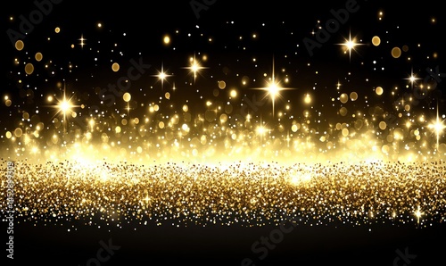 Obraz premium Golden glitter sparkle lights on black background, festive celebration design