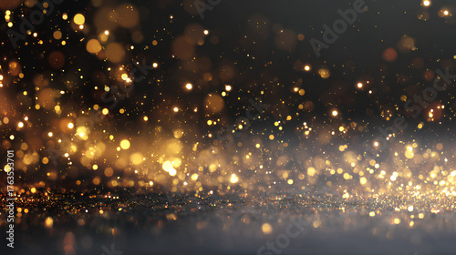 Naklejka premium golden glittering light effect sparkles on festive background with shimmer...