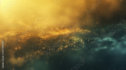 Obraz premium Golden Glittering Particle Wave Background, Shimmering Sparkles Abstract...