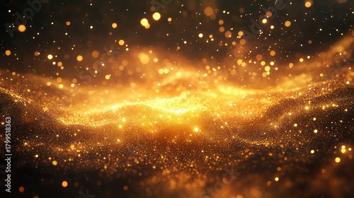 © vectorwin, Obraz premium Golden glittering particles creating abstract light bokeh effect