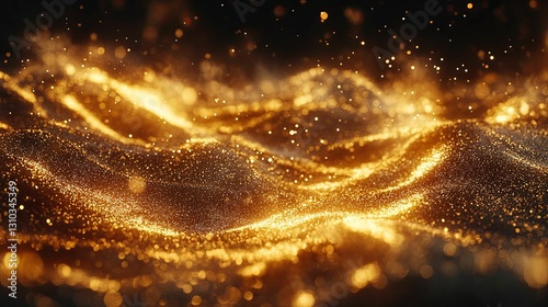 Naklejka premium Golden Glittering Particles Flowing In Waves