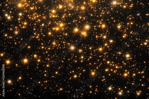 © Dimas, Naklejka premium Golden glittering sparkles on dark background. Festive shiny gold dust texture for holidays