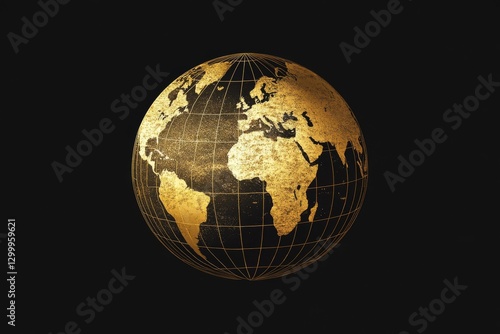 © Bargais, Fototapeta premium Golden globe on black background.