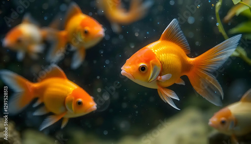 © LarisManis, Fototapeta premium Golden Glow: Koi in their Element.