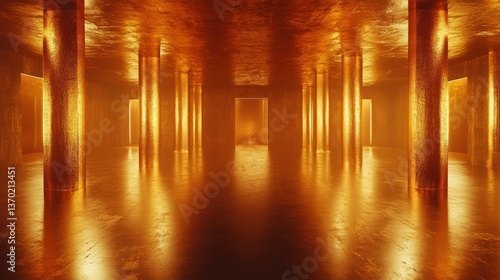Obraz premium Golden, glowing, columned hall