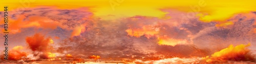 Obraz premium Golden glowing red orange overcast sunset sky 360 hdr panorama. Seamless...