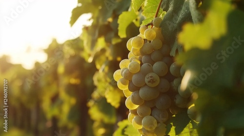 © Yeivaz, Fototapeta premium Golden Grapes in Vineyard - A Summer Harvest