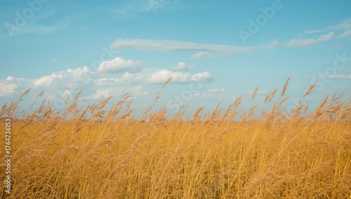 © -Quantum Pixels-, Fototapeta premium Golden grass beneath a clear blue sky