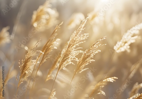 © MD, Fototapeta premium Golden Grass Blades Macro Photography