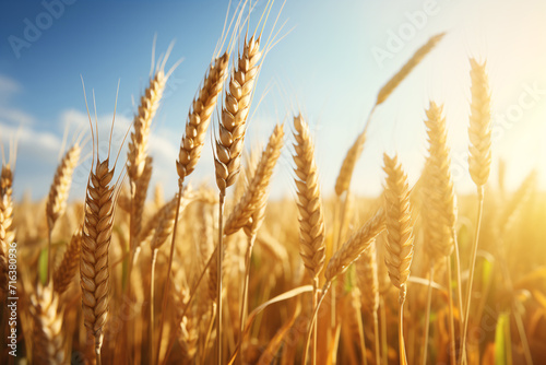Fototapeta premium Golden Grass Field on a Sunny Summer Day, A Serene and Beautiful Landscape