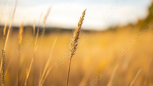 Fototapeta premium Golden Grass Spike in Stunning Natural Field at Dusk with Soft Focus...