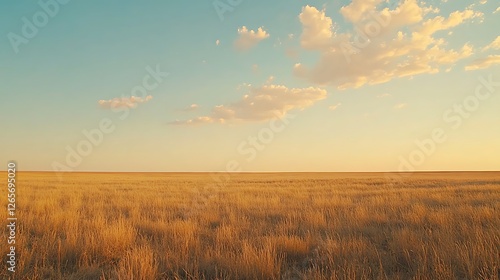Obraz premium Golden Grassland Under a Peaceful Sunset Sky