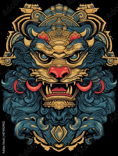 © eQuinox Studio, Fototapeta premium Golden Guardian Lion with Intricate Ornamentation