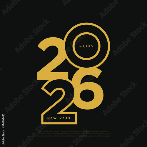 Fototapeta premium Golden 2026 Happy New Year Number Typography Design on black background.