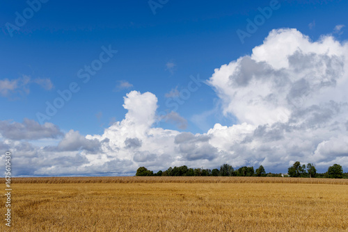 © Jorens, Fototapeta premium Golden Harvested Field Under a Dramatic Sky