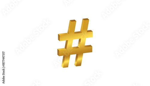 Obraz premium Golden Hashtag Symbol on White Background for Social Media.