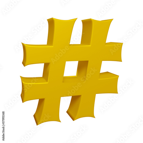 © Graphicyano8, Obraz premium Golden hashtag symbol or icon design in 3d rendering
