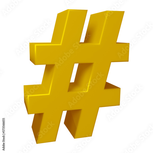 © Graphicyano8, Fototapeta premium Golden hashtag symbol or icon design in 3d rendering
