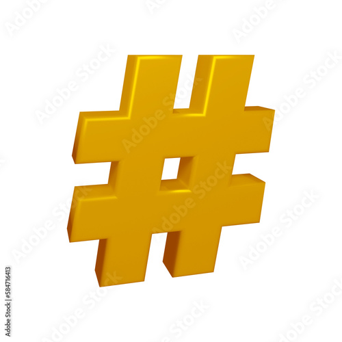 © Graphicyano8, Obraz premium Golden hashtag symbol or icon design in 3d rendering