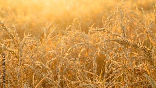 Fototapeta premium Golden hay field at sunset showcasing intricate straw texture A serene and...