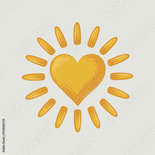 Obraz premium Golden heart shaped sun radiating warmth and love