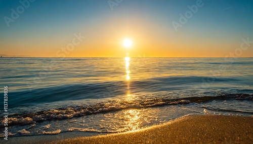 © Arfin Studio, Obraz premium Golden Heart-Shaped Sunlight Reflected on Calm Ocean Waves During a Magical Sunrise