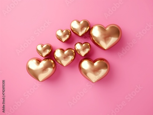Fototapeta premium Golden hearts on a pink background.