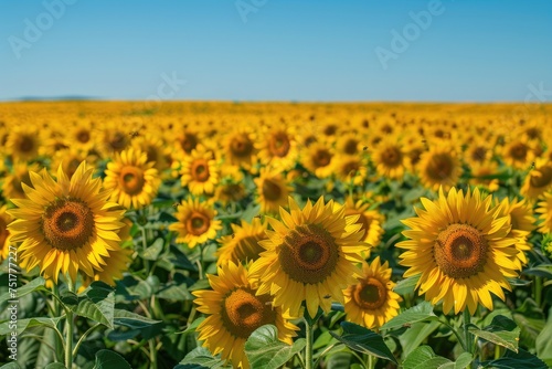 Fototapeta premium Golden Horizon: Vast Sunflower Field under Azure Sky, AI Generative
