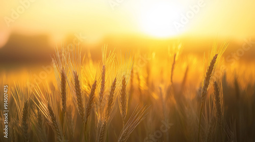 © Sascha, Obraz premium Golden Horizon: Wheat Fields at Dusk. Generative AI