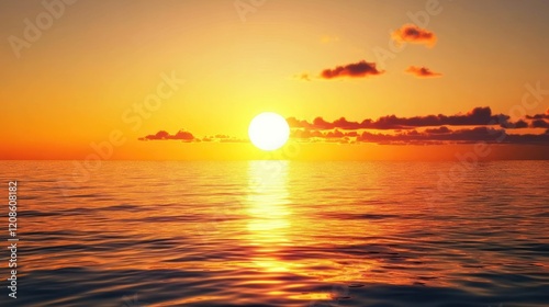 Naklejka premium Golden Hour at Sea: A Serene Sunset Over the Ocean with Reflective Waters