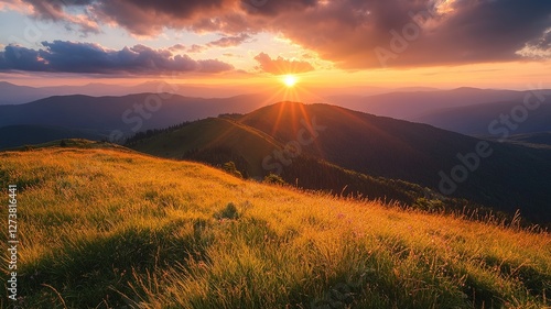 © PS Poppy, Obraz premium Golden Hour at the Mountain Summit