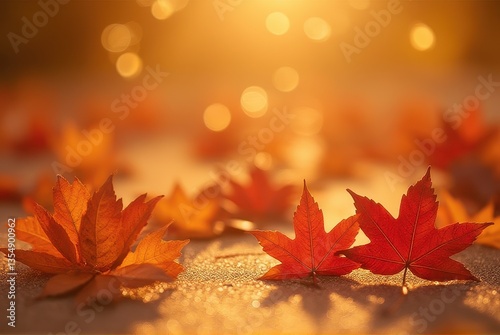 Naklejka premium Golden Hour Autumn Leaves on Ground