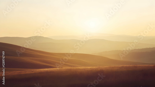 Fototapeta premium Golden hour bathes rolling hills in warm light, creating a serene and...