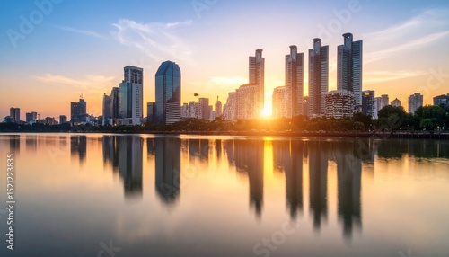 © bintaf, Obraz premium Golden Hour Cityscape Reflection