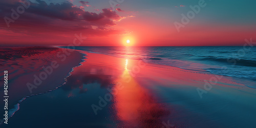 © Flop, Fototapeta premium Golden Hour Coastal Serenity: Untouched Ocean Views and Warm Sunset Hues