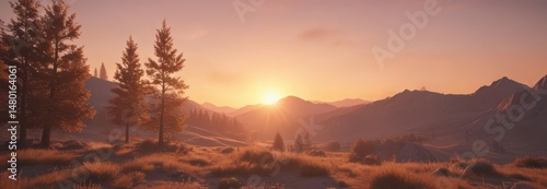 Fototapeta premium Golden hour glow, fading into soft pastel, magical scene, sunrise, magical