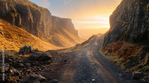 Obraz premium Golden Hour Hike: Majestic Mountain Pass at Sunrise