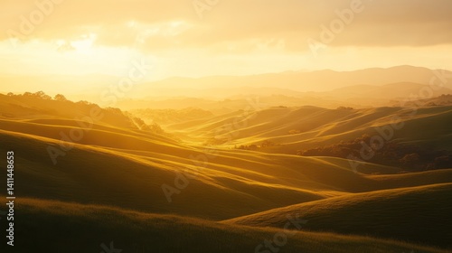 Fototapeta premium Golden Hour Hills: Tuscany's Serene Sunset Landscape