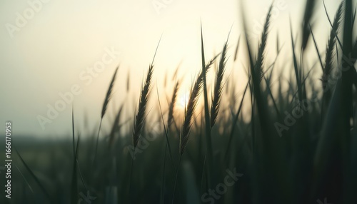 Obraz premium Golden hour illuminates the tall grass, the light softly embracing the natural beauty of the field