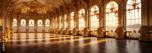 © evening_tao, Obraz premium Golden Hour in a Grand Historic Ballroom